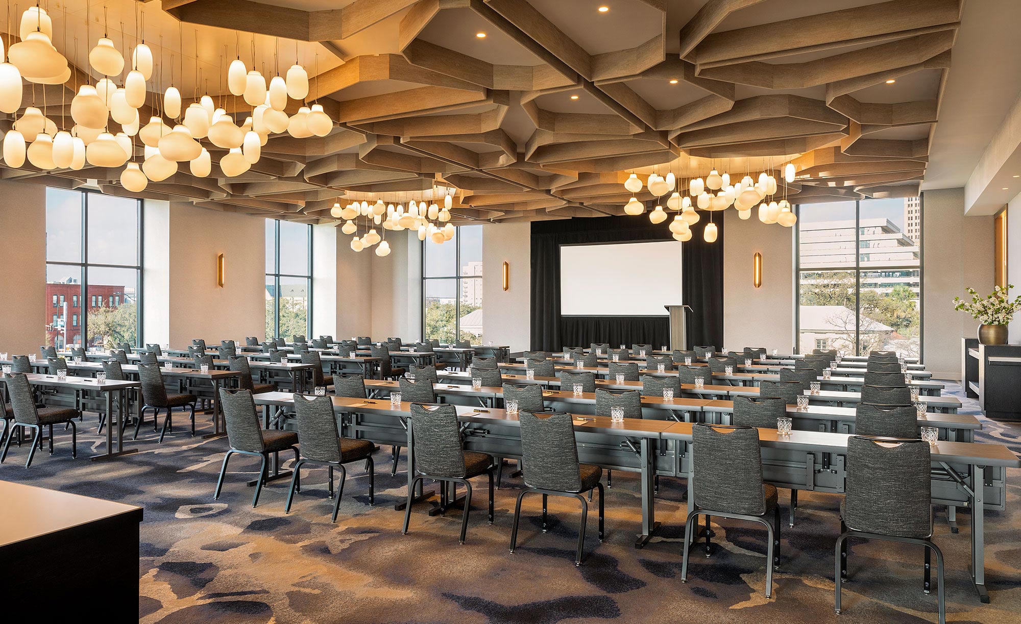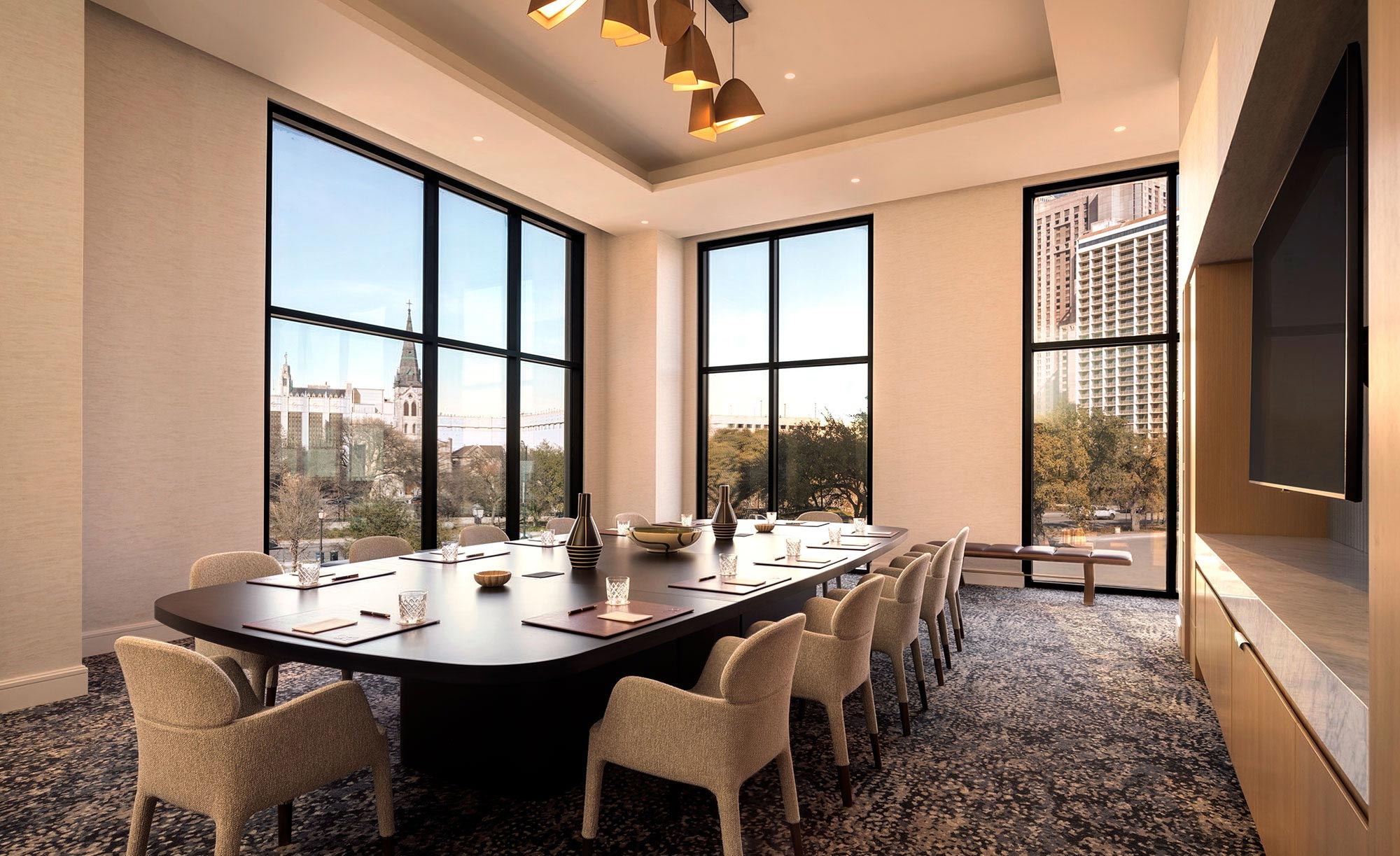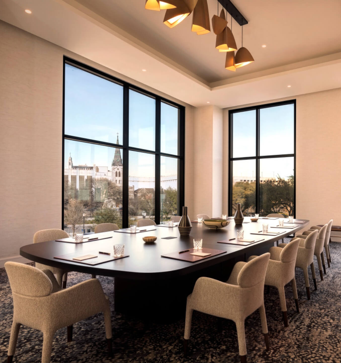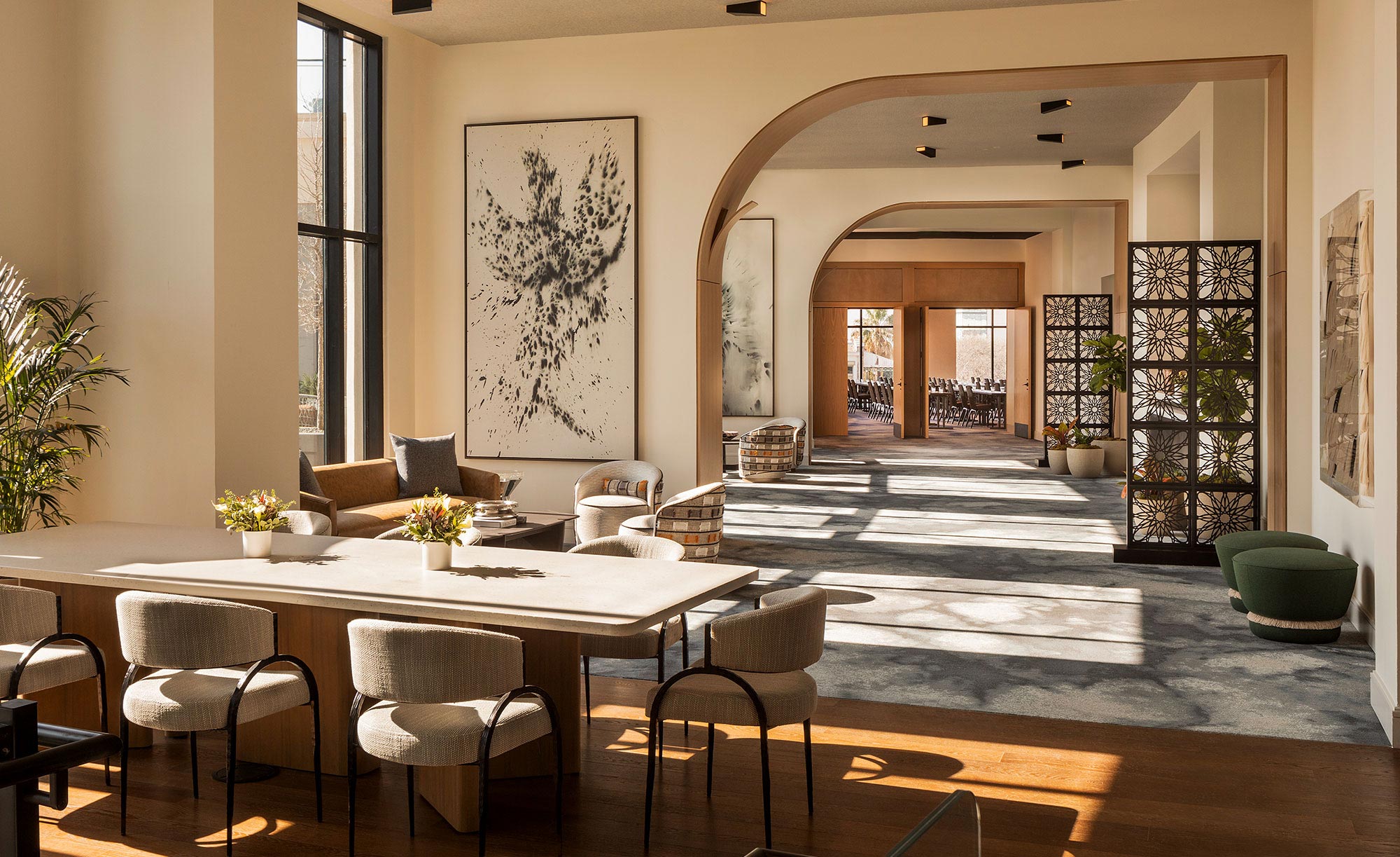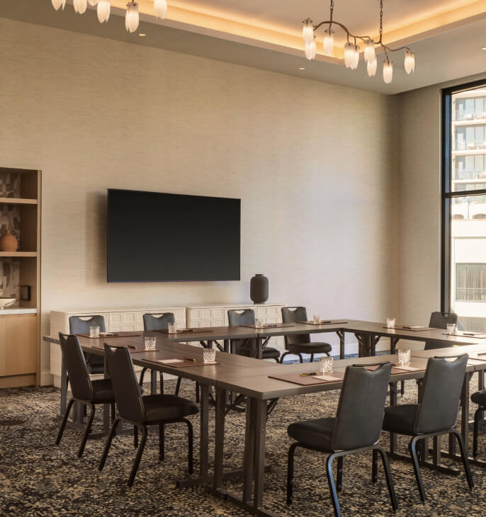 Balancing openness and adaptability, The Solana Room offers generous scale with thoughtful flexibility. This light-filled space can be easily divided into North and South for room to breathe and focus to align.