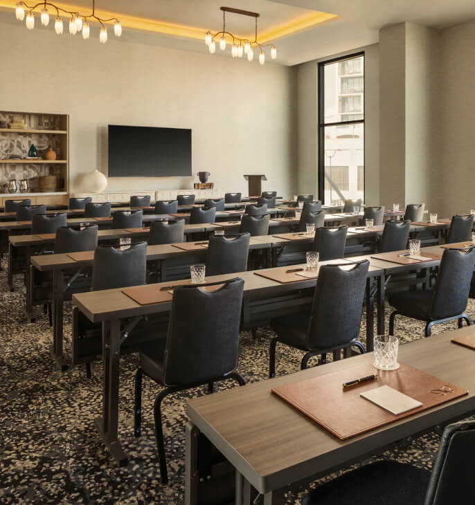 The Zephyr Room is a tech-rich space that can transform into two intentionally crafted North and South rooms where acoustic precision and integrated tools create a setting of seamless flow.