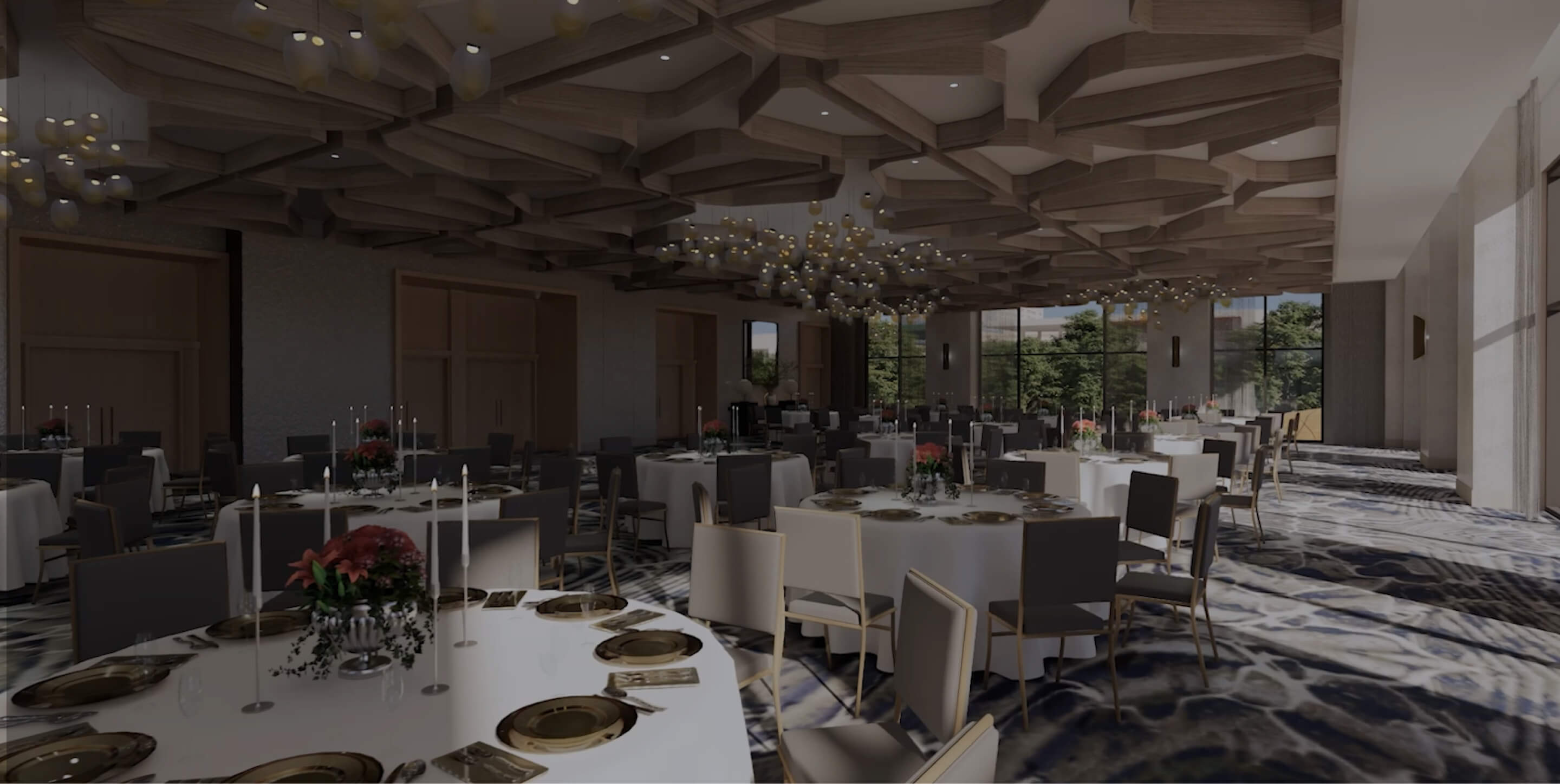 A flexible, tech-rich space, the Zephyr Room can transform a singular expanse to two intentionally crafted North and South rooms. Acoustic precision, integrated tools, and direct access to the Kaleidoscope Terrace create a setting of seamless flow.