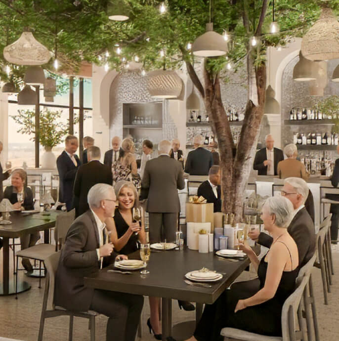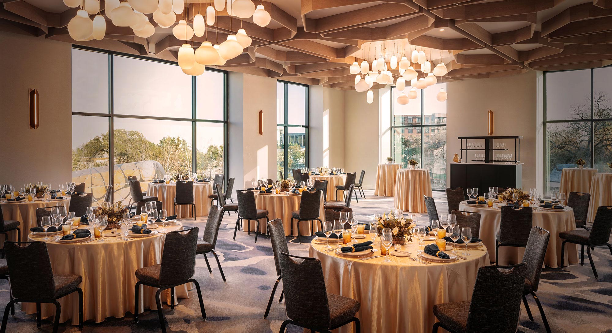 As our largest venue, the 5,000 sq. ft. Meridian Ballroom is a statement of grace and possibility. Sunlit interiors and direct access to both the Kaleidoscope Terrace and La Mariposa create a dynamic flow between indoors and out, shaping an atmosphere where every event finds its perfect expression.