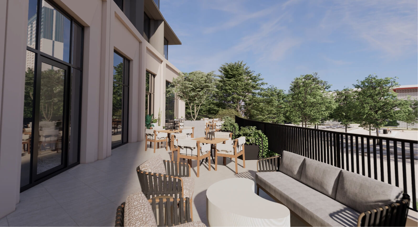 Perched above the park, the Kaleidoscope Terrace offers an unmatched open-air setting, elevated, insulated, and shaped with effortless grace. More than a terrace, it’s an independent venue where gatherings unfold with clarity, calm, and uncommon beauty.