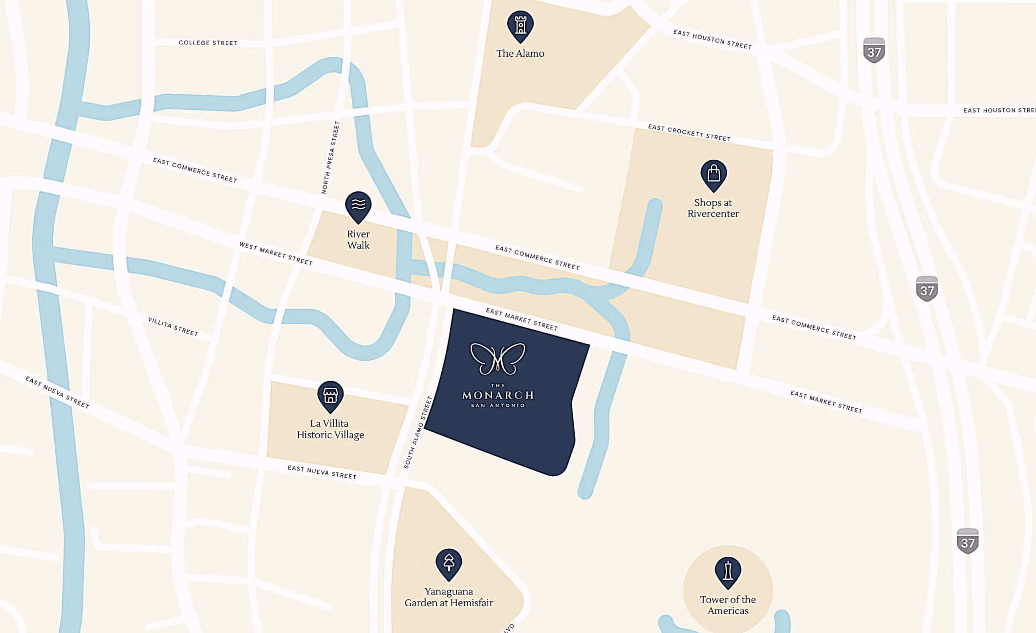 The Monarch sits in the heart of a burgeoning downtown, just mere steps from museums, galleries, shopping and some of San Antonio’s most storied historic sites.