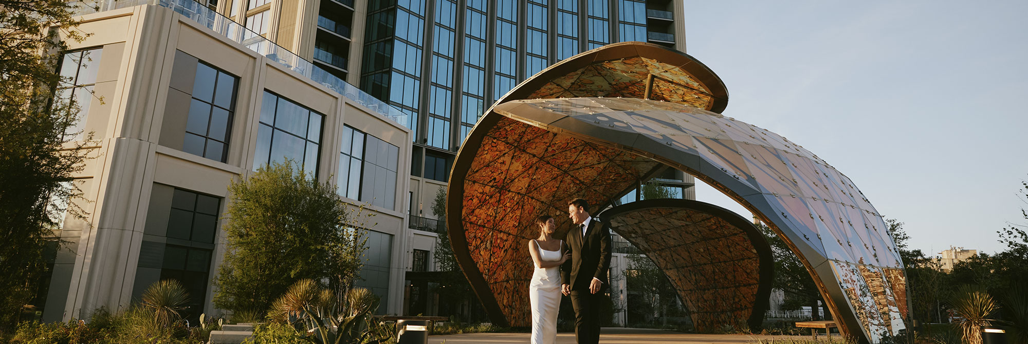 Set within an urban green space, the 4,000 sq. ft. La Mariposa at The Monarch San Antonio is an open-air venue carried by the sculptural wings of its namesake. Iconic and intentionally grounded, it becomes a place where vows rise into open sky and celebrations emerge beneath light and movement.