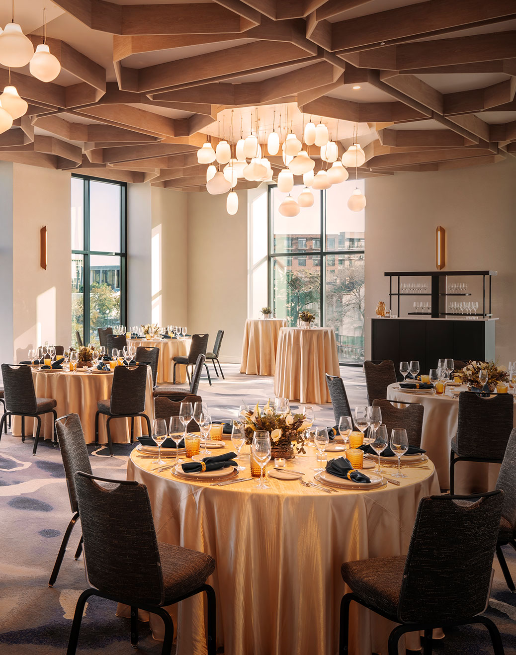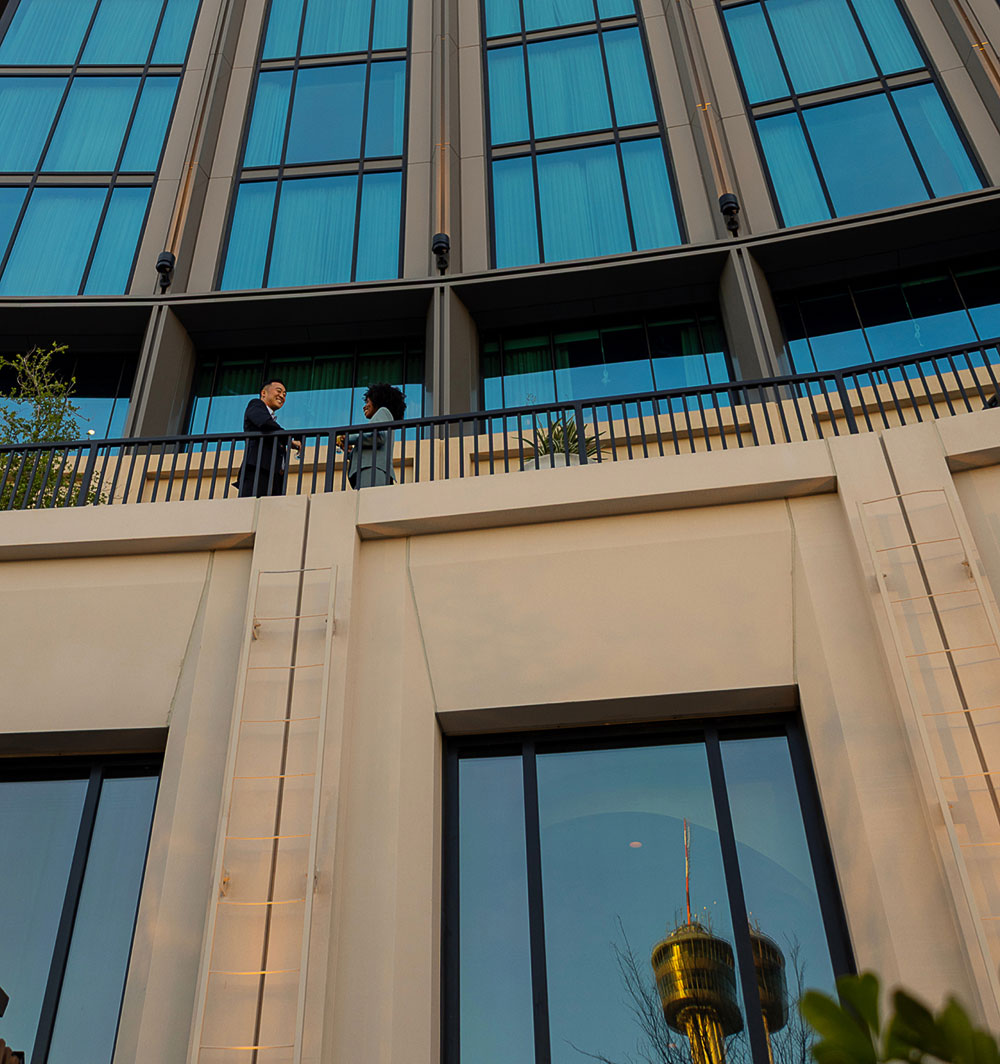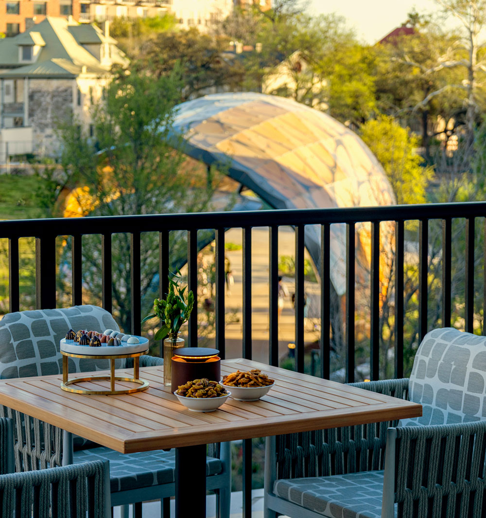 Grace is built into the architecture itself, with thoughtfully designed ceiling and lighting that casts the room in a warm, sculptural glow. Just beyond, The Kaleidoscope Terrace hovers above the park and La Mariposa at The Monarch San Antonio, inviting ceremonies and receptions to unfold where city, sky, and nature converge.