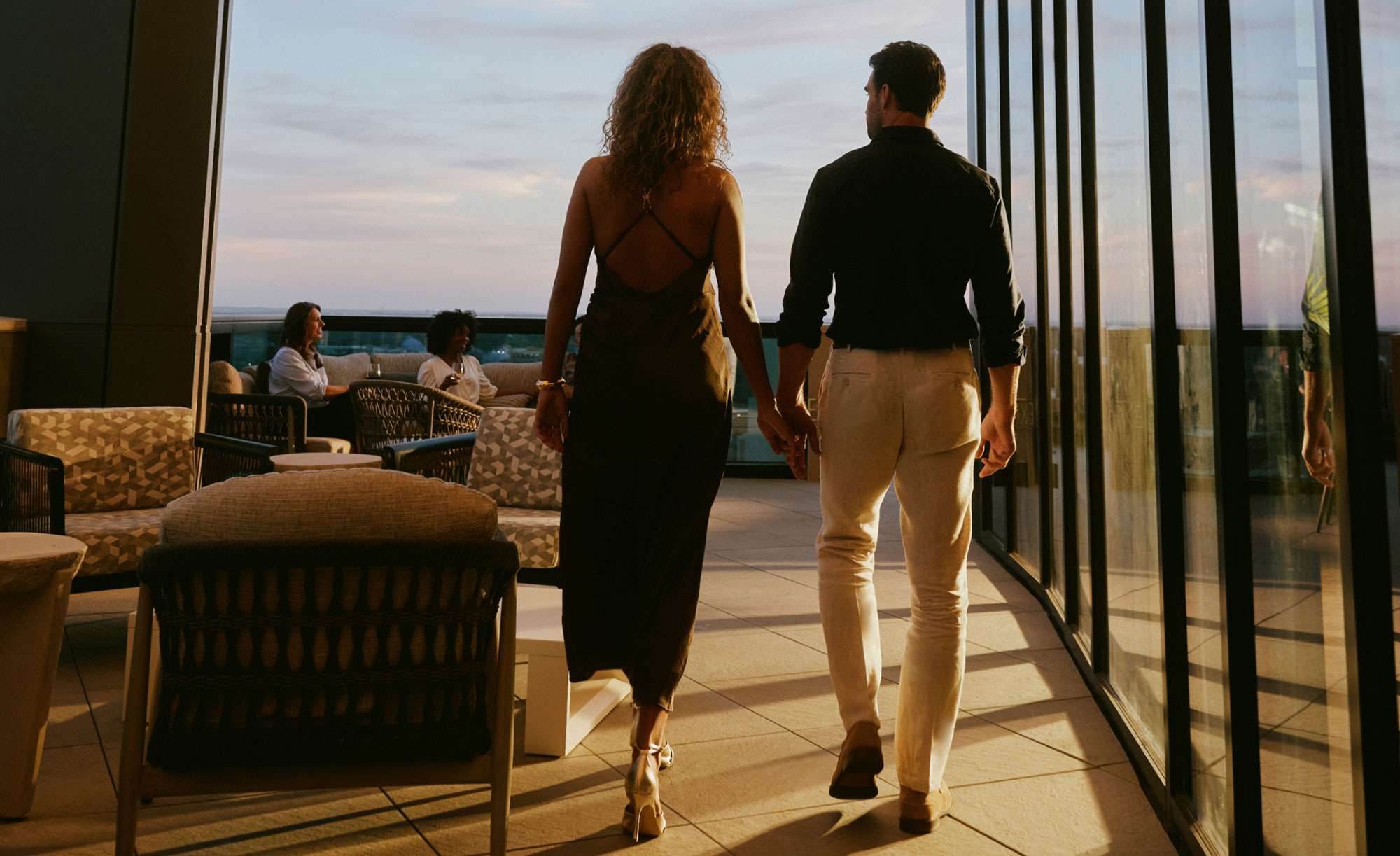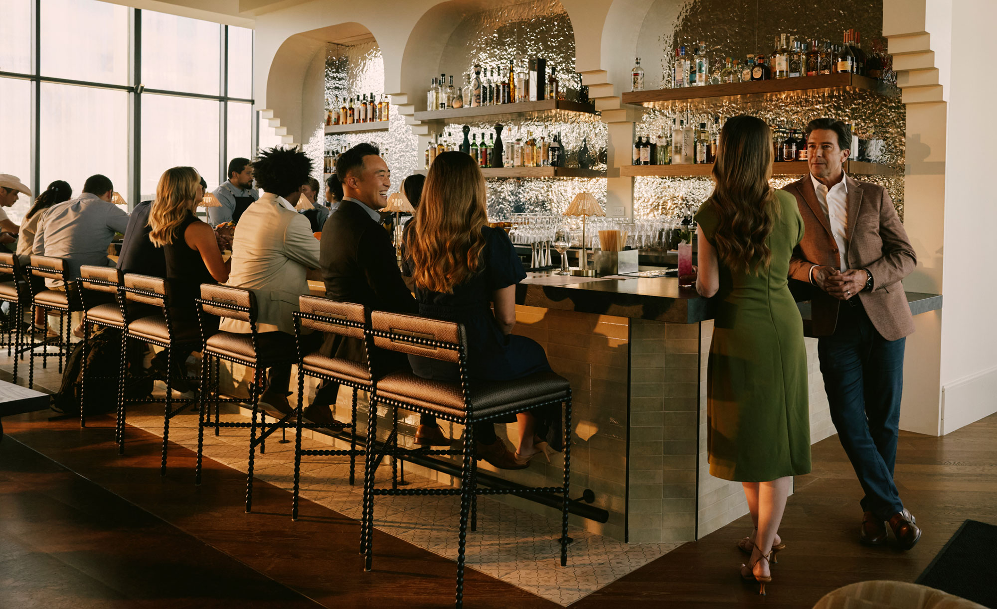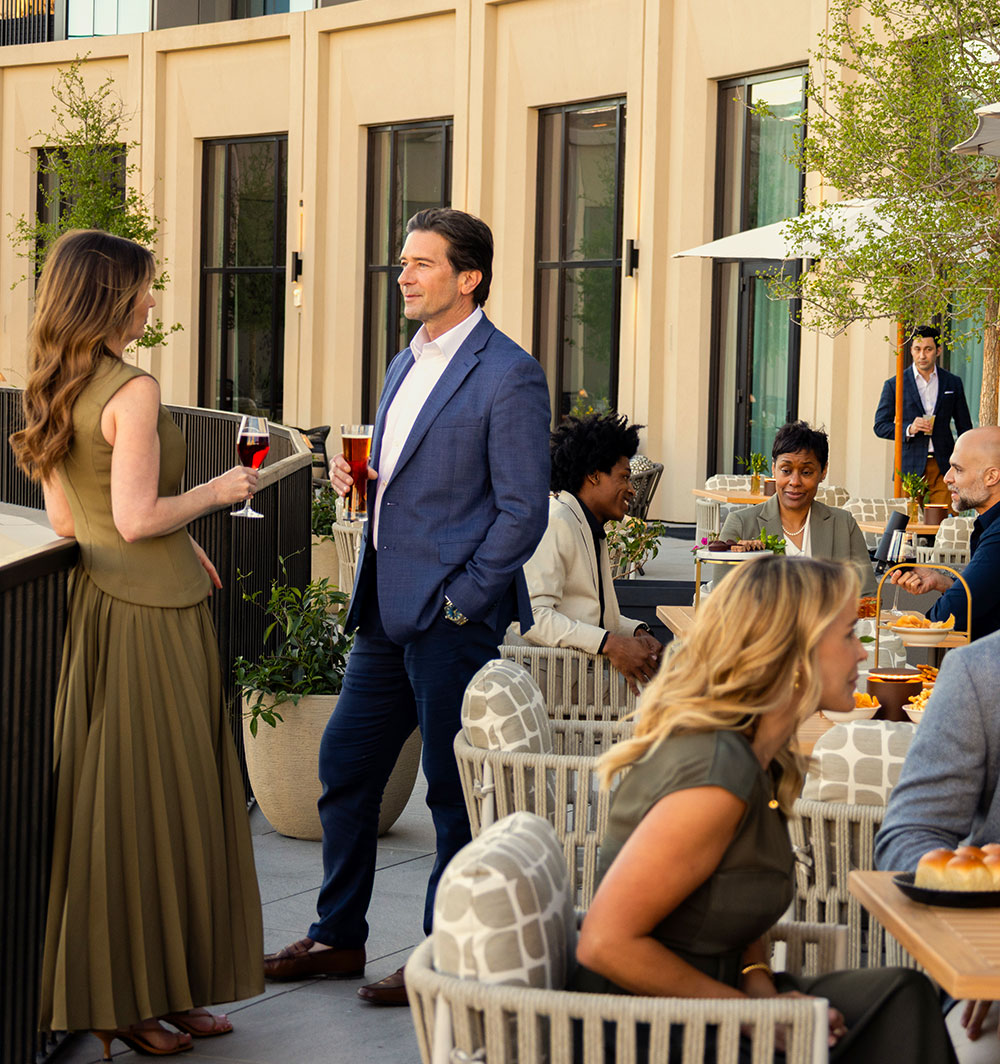 Grace is built into the architecture itself, with thoughtfully designed ceiling and lighting that casts the room in a warm, sculptural glow. Just beyond, The Kaleidoscope Terrace hovers above the park and La Mariposa at The Monarch San Antonio, inviting ceremonies and receptions to unfold where city, sky, and nature converge.